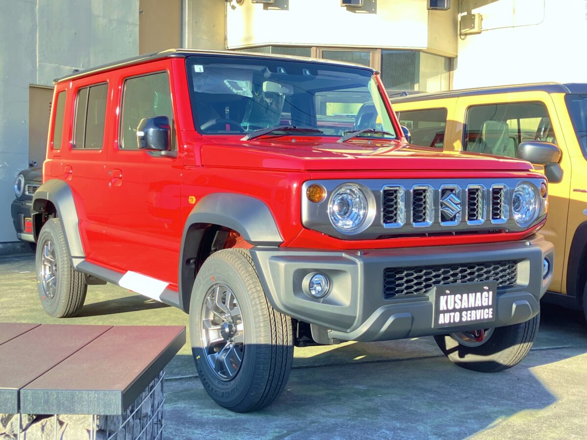 こんにちは、草薙オートサービスのハスラーがすきな人です🚘 みなさま本年もどうぞよろしくお願いいたします🎍🙏 突然ですが速報です!!! なんと、ジムニーノマドの展示車が、やってきましたー!!!! みなさん一度は思ったことありませんか? ジムニーが5ドアだったらいいのにな~………って。